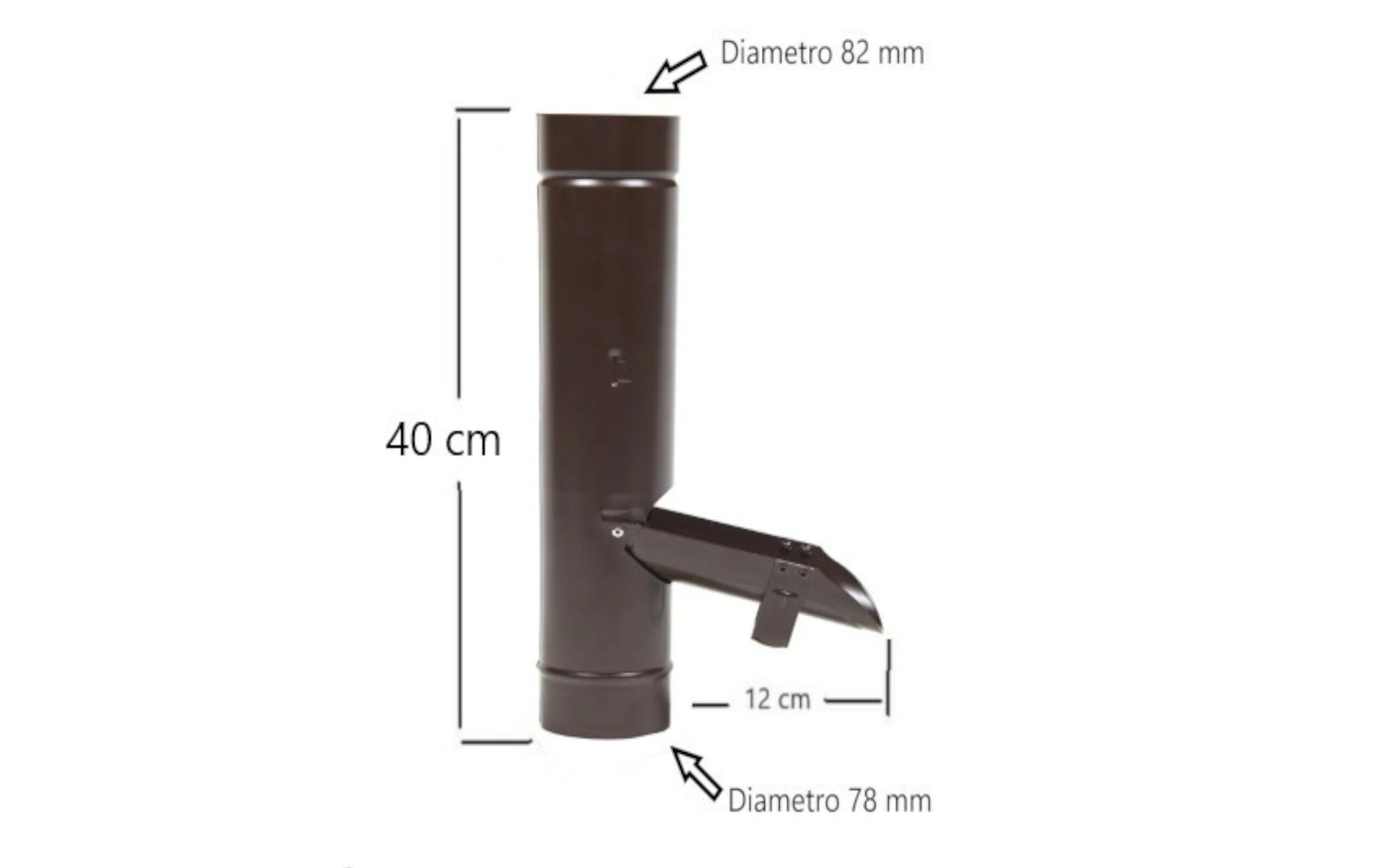 Travasatore acqua piovana il lamiera testa di moro diametro 80. Acqua piovana recupero? Fare in modo di recuperarla è possibile? Possiamo ispezionare un tubo pluviale? Da ora si!! L’acqua piovana che scende dai tubi pluviali normalmente non è canalabile. Con questo travasatore acqua per tubo pluviale invece si! Quando piove, si può aprire lo sportello posto frontalmente, e raccogliere l’acqua in qualsiasi raccoglitore collocato sotto all’apertura. In questo modo l’acqua che scende dal tubo pluviale potrà essere raccolta per poterla usare in un secondo momento. Possiamo immagazzinarla in appositi contenitori, per innaffiare il giardino, un orto o i nostri fiori. Non solo! Serve anche come ispezione per il tubo pluviale.