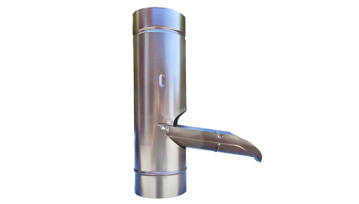 La seconda funzione del travasatore è quella di monitorare costantemente il nostro tubo pluviale da foglie, pini e sporcizia. Aprendolo possiamo controllare, e se necessario, togliere il materiale indesiderato che ostruisce il pluviale. Il montaggio è estremamente semplice. Il nostro travasatore lamiera testa di moro da 100 lo si può sistemare ad un altezza personalizzata. 1) posizionare il travasatore all’altezza desiderata. 2) segnare con un pennarello la parte superiore e inferiore del travasatore sul tubo pluviale. 3) tagliare (con una semplice sega da ferro) 5 centimetri sotto al segno superiore e 5 centimetri sopra al segno inferiore. 4) Infilare il travasatore partendo dall’alto.